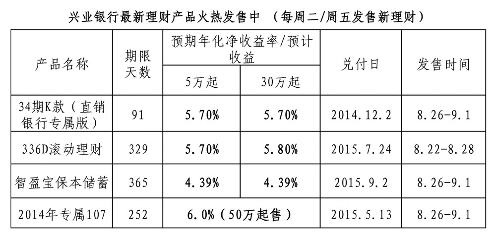 兴业银行最新理财产品火热发售中