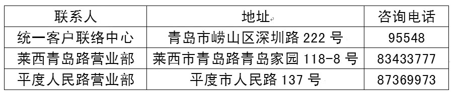 为给您提供更加优质高效的服务,方便日常的业务办理,我公司将于9月5日将原在中信证券(山东)有限责任公司平度人民路证券营业部开立帐户的莱西投资者,批量转移到中信证券(山东)有限责任公司莱西青岛路证券营业部。为最大限度地降低由于迁移可能给客户带来的不便,在2014年8月30日至12月31日的过渡期内,上述客户可以到莱西与平度两家营业部中的任一营业部申请办理所有的账户业务。转移完成后,您的资金账号保持不变,交易也没有任何的变化。感谢您对公司多年来的支持,如有疑问请拨打咨询电话。