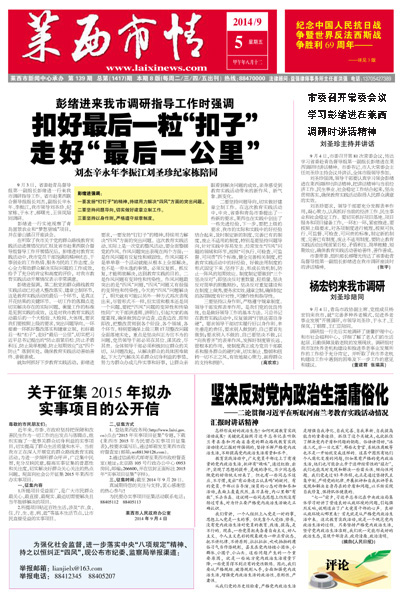 9月4日,青岛市政协副主席、党组成员杨宏钧来我市,就“完善多种养老模式,...