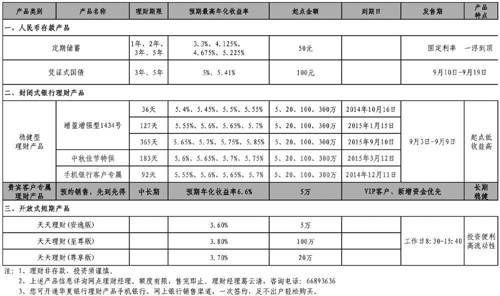 华夏银行提示您:利率不断下调,存款收益降低。为合理优化您个人的资产配置,可适当选择购买理财产品。华夏银行“龙盈”系列理财产品预期收益率全市同业最高,是您投资理财的最佳选择!
