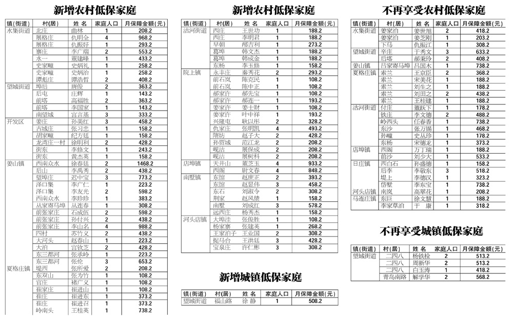 二0一四年九月份城乡低保对象调整情况公示