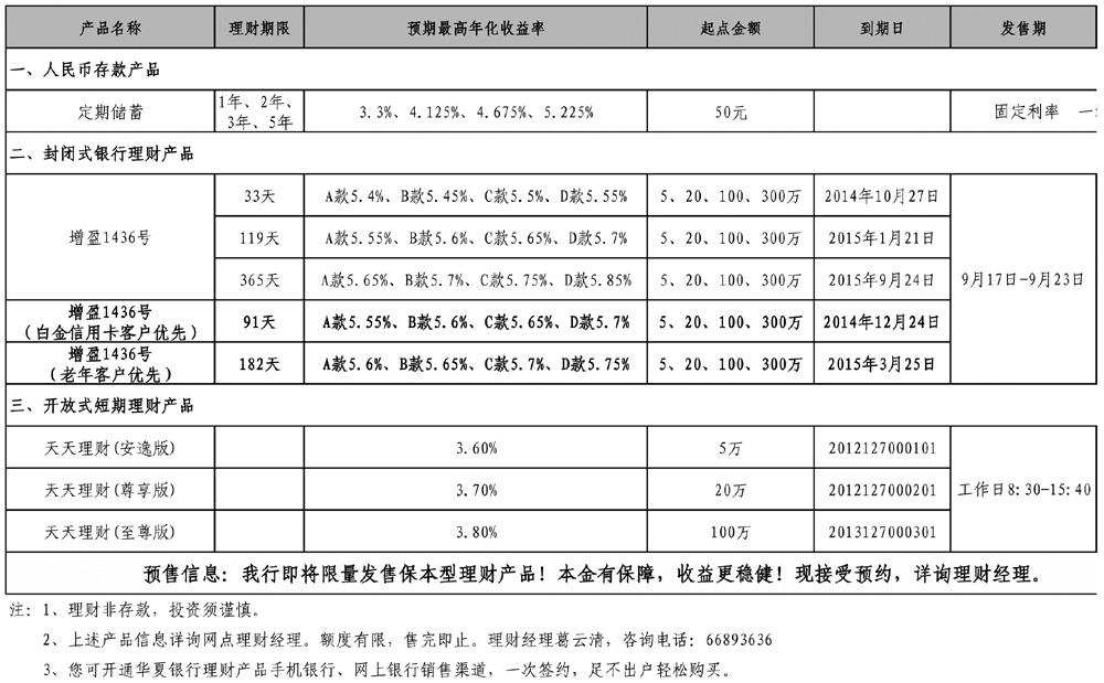 华夏银行提示您:利率不断下调,存款收益降低。为合理优化您个人的资产配置,可适当选择购买理财产品。华夏银行“龙盈”系列理财产品预期收益率全市同业最高,是您投资理财的最佳选择!
