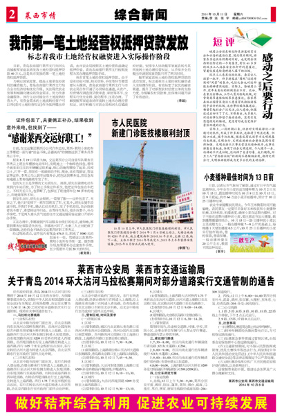 10月10日,青岛市市容环境整治行动考核组来我市就2014...