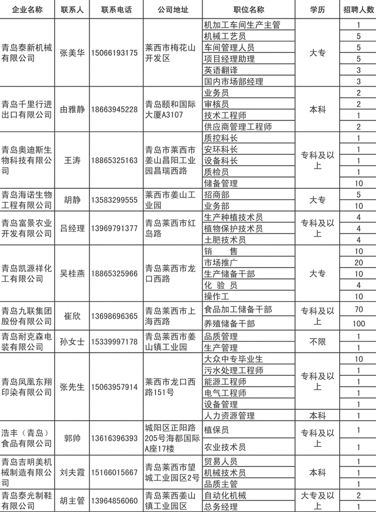 “圆梦青岛”高校毕业生专场招聘会招工信息