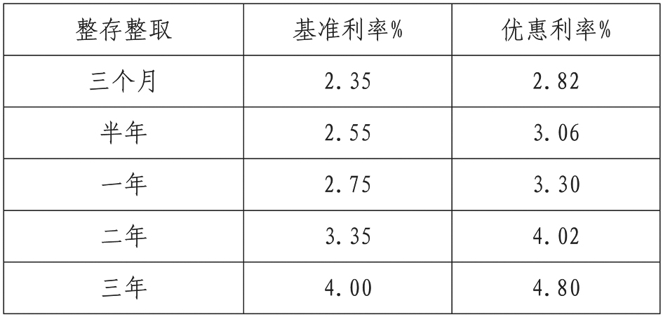 2、优惠利率是在央行基准利率基础上再上浮20%,达到目前最高利率水平。