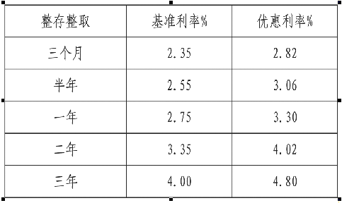 2、优惠利率是在央行基准利率基础上再上浮20%,达到目前最高利率水平。
