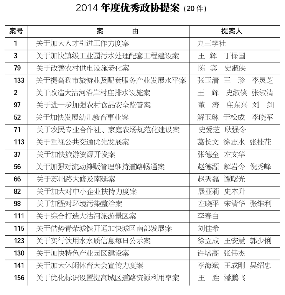 2014年度优秀政协提案(20件)