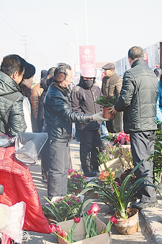 ▲大年三十,记者在城区各农贸市场看到,盆景鲜花买卖格外火爆。“现在人们生活好了,过年过节不再像以前那样买大鱼大肉了,在家里摆盆鲜花,不仅能美化室内环境,还能净化家里的空气,进了腊月门,鲜花卖得特别火,价格也比平时贵得多。”50岁的花农老张是院上镇的一位农民,去年仅鲜花一项就收入5万多元。 (李远)