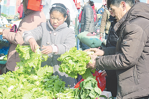农历大年三十,记者在农贸市场看到,蔬菜价格较平日里贵得多,油菜、生菜每斤卖到9元。“过年买油菜、生菜,预示着新年有财生财,今天一上午我就卖出3000斤油菜。”在黄海西路农副产品交易市场,菜农老刘边忙着卖菜,边高兴地告诉记者。