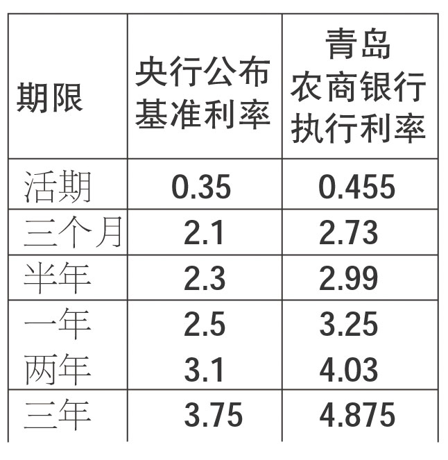 为更好地满足莱西市民的金融需求,青岛农商银行莱西支行第一时间响应中央政策,自3月1日起执行个人存款利率全线上浮到顶,即个人存款的各档期利率在央行规定的基准利率基础上上浮30%,存款利率全市最高。