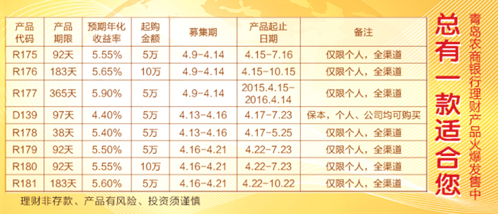 自2015年4月10日起,青岛农商银行莱西支行全面代销储蓄国债。储蓄国债具有“有国家信用、安全性强;收益稳定、利率高;变现灵活、流动性好;发售网点多、购买方便;发行期次多、购买起点低”五大优点,是您稳健理财的最佳选择!