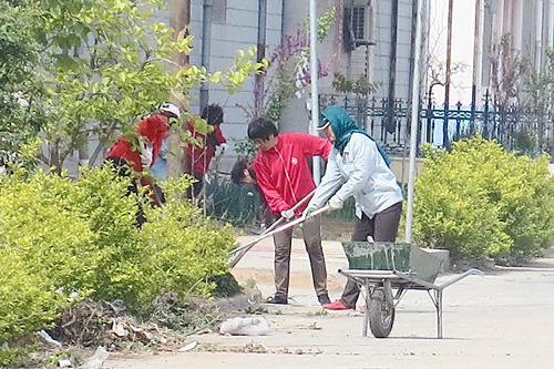 图二节日期间,我市千余名城乡环卫工人放弃休息时间,忙碌在城乡清扫保洁第一线。 (李远)