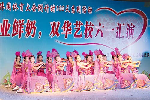 5月30日晚,由市文广新局主办、双华艺术学校承办的青岛2015世界休闲体育大会倒计时100天系列活动暨“清凉一夏·情满双华”——高氏牧业鲜奶、双华艺校六一汇演,在人民广场举行,小朋友们精彩的演出为市民带来一场视觉盛宴。 (张宇)