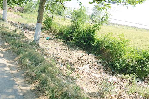 河头店镇水台村村南头道路两侧垃圾成堆。