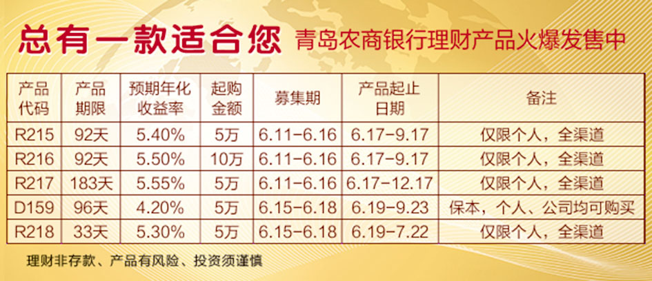 具体产品信息请咨询青岛农商银行莱西支行各网点。