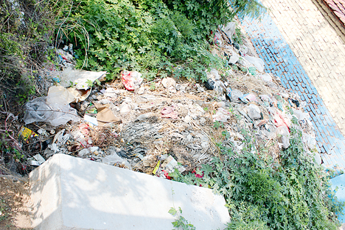 沽河街道孙受中心中学对面有垃圾堆。