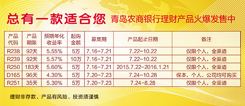 具体产品信息请咨询青岛农商银行莱西支行各网点。