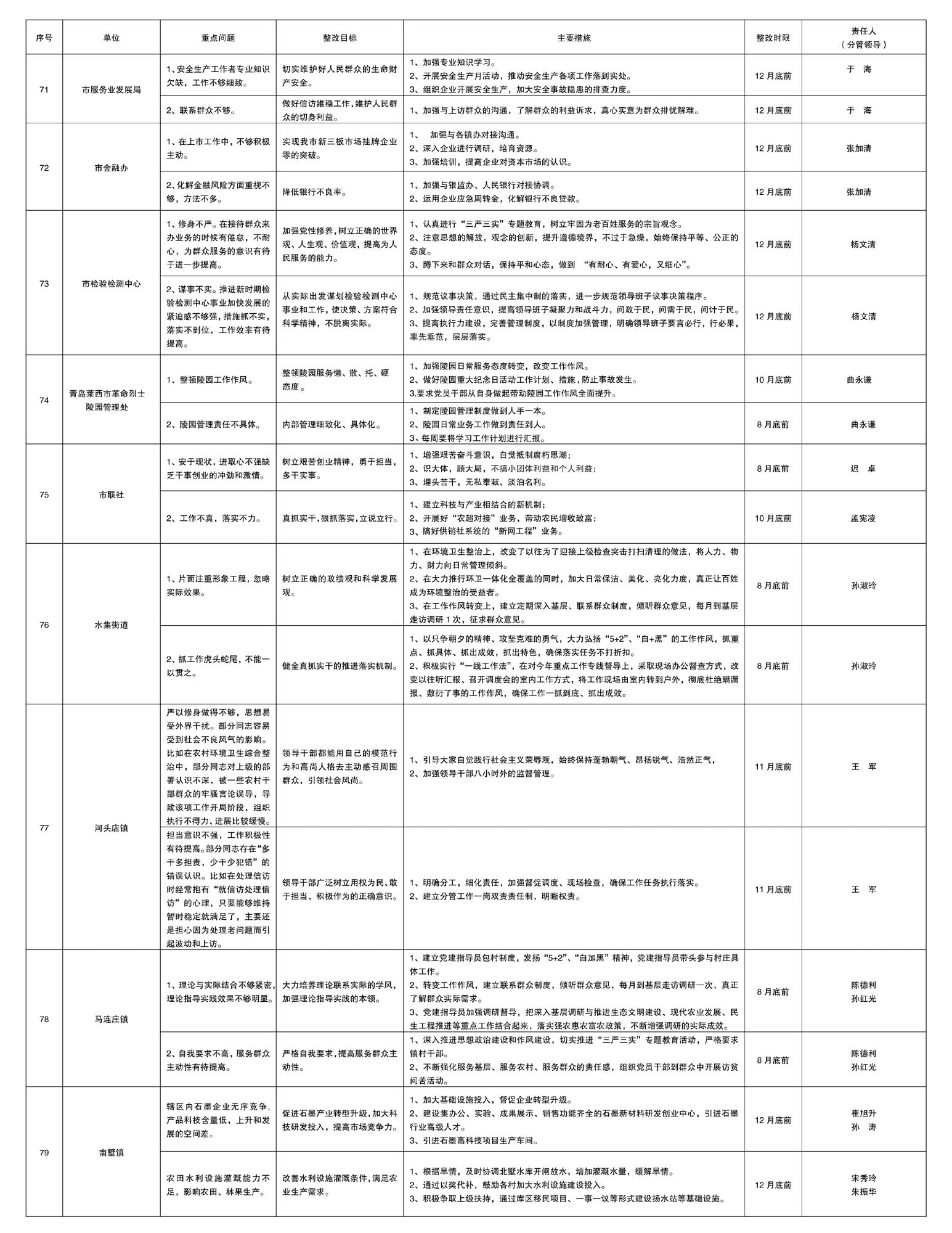 莱西市各单位“三严三实”专题教育即知即改重点问题公示表