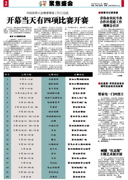 9月10日上午,青岛2015世界休闲体育大会开幕式仿真合练在市体育中心体育场举行。  ...