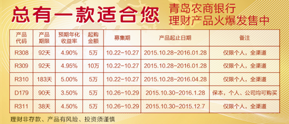 青岛农商银行莱西支行新一期理财产品火热销售中