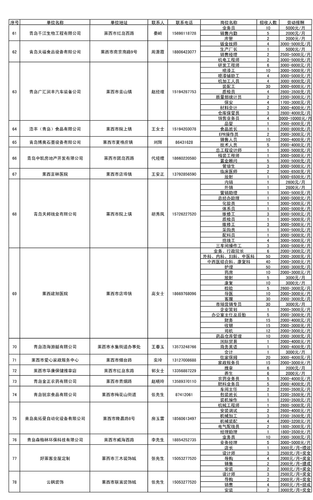 莱西市人力资源市场企业招聘信息