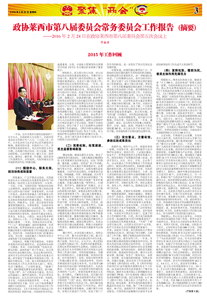 政协莱西市第八届委员会第五次会议隆重开幕