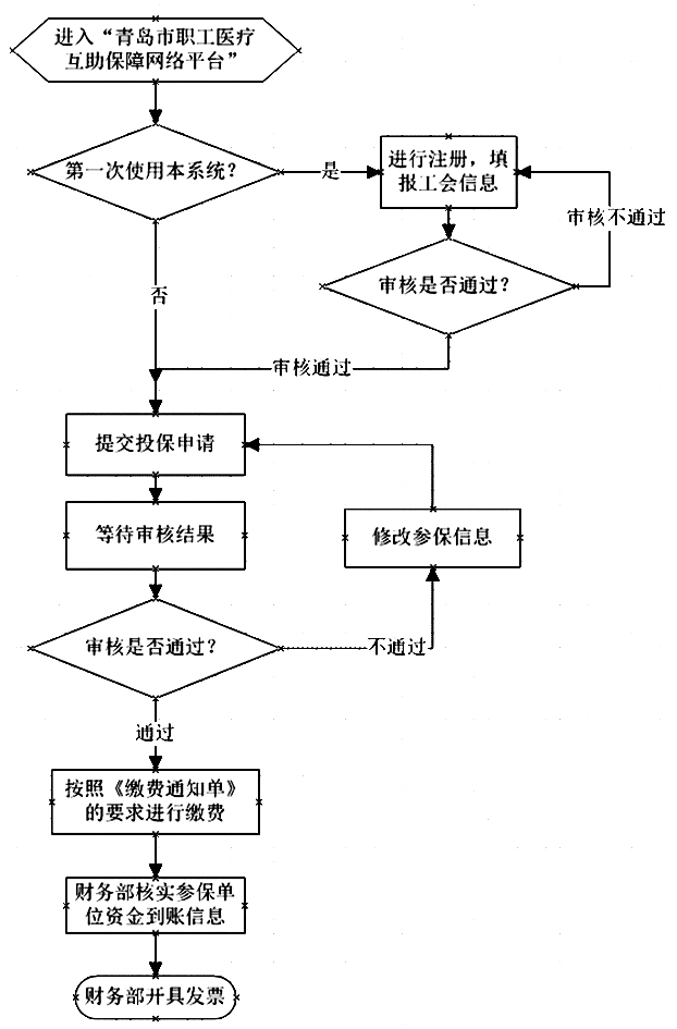 第二步:首次使用 “平台”的单位,进行注册。具体详见《青岛市职工互助保障信息化网络系统使用说明(试行)V1.1》。(以下简称使用说明)