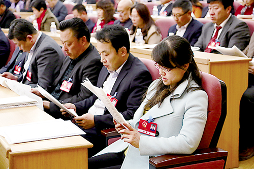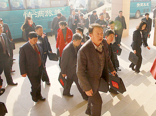2月25日,莱西市第十七届人民代表大会第五次会议开幕前,代表们肩负使命步入会场。 (杜茜)