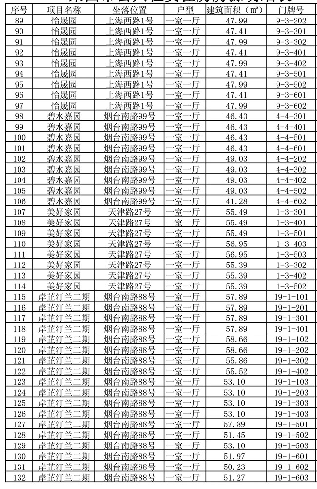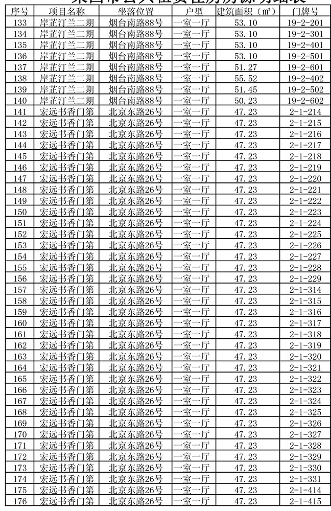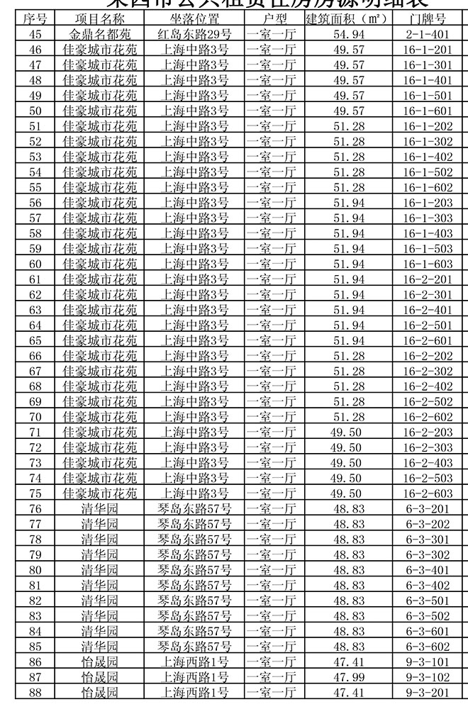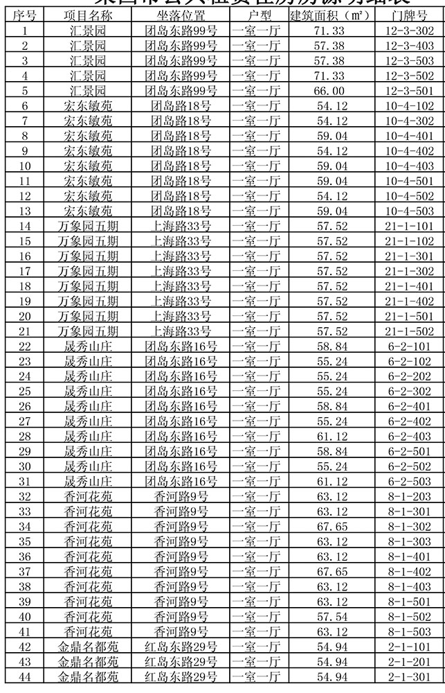 我市公共租赁住房房源明细表