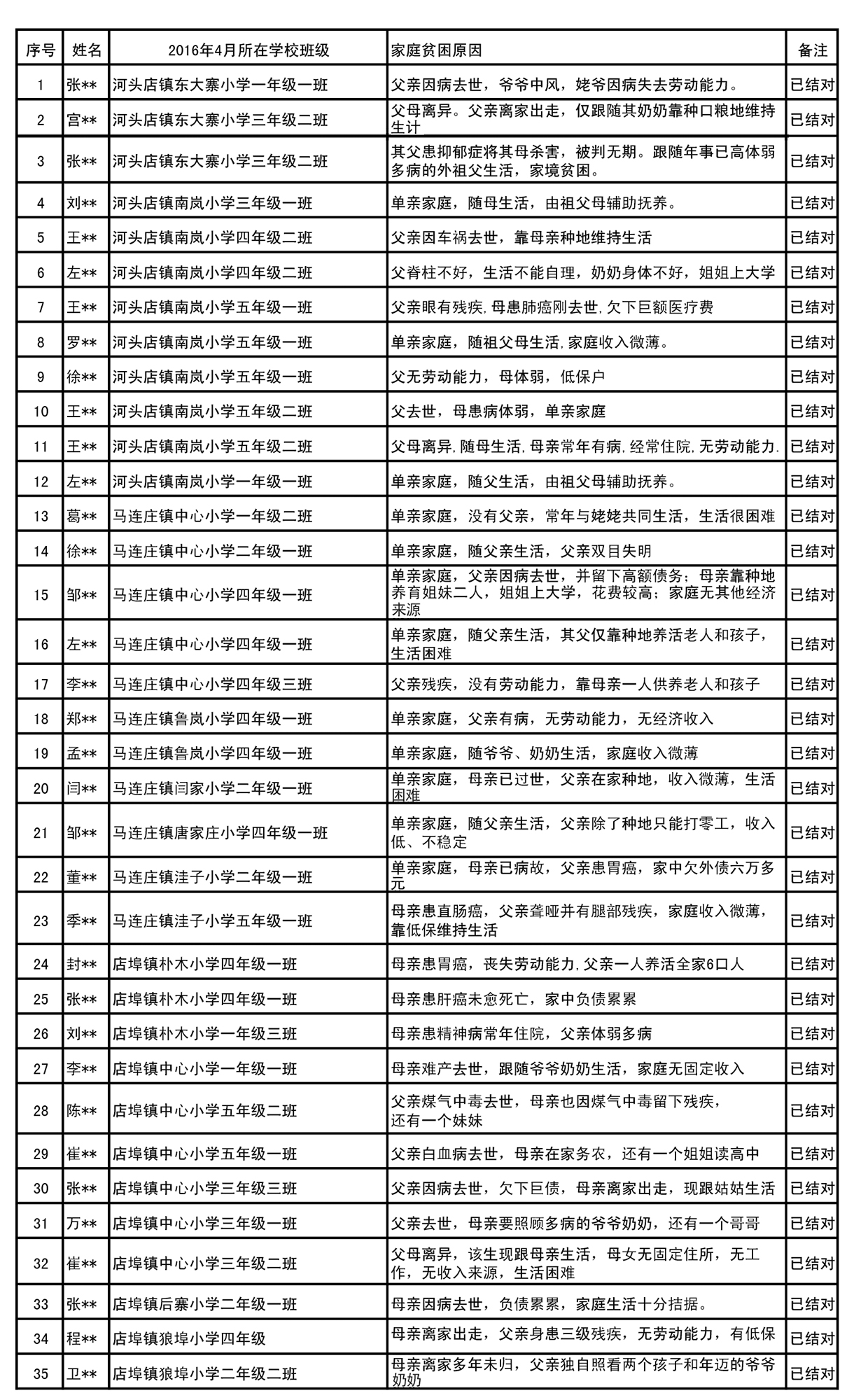 附:2016年莱西市拟资助“春蕾女童”花名册