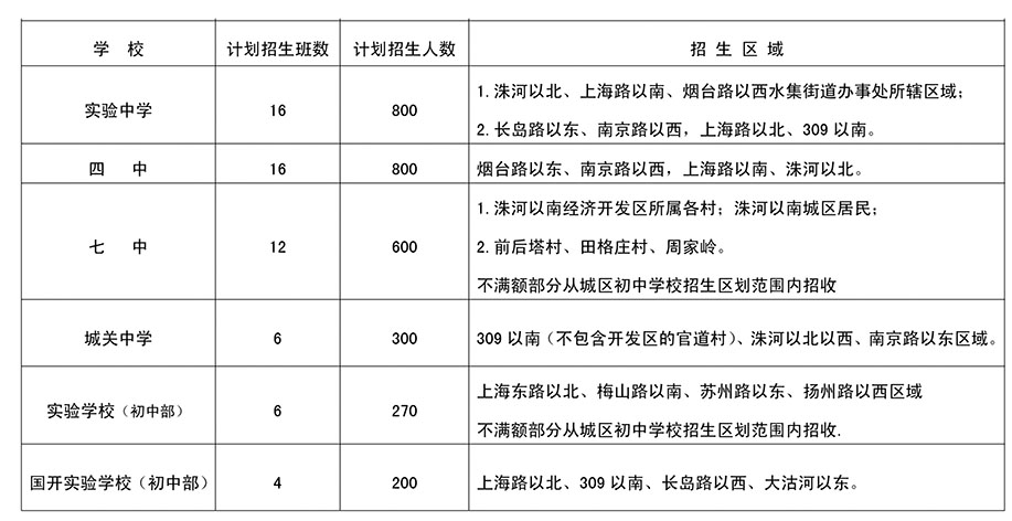今年,实验学校继续招收初中部学生,招生报名时间为6月11日,招生对象为招生范围内小学应届毕业生(就近入学)的学生。莱西七中将继续招收七年一贯制学生,报名对象为莱西七中招生范围内(就近入学)的城区小学应届毕业生,报名采用学生和家长自愿的方式进行,不进行任何形式的考试。莱西四中初一招收7-14名足球特长生,招生范围面向全市小学毕业生。