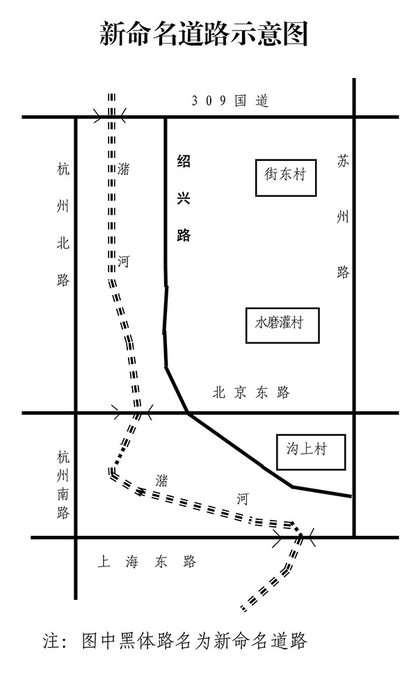 绍兴路:位于苏州路与杭州路之间,潴河东岸,南起上海路北50米处的苏州路西侧(与苏州路交接),右弧形向北穿过北京东路,规划建设至309国道,长3500米,宽12米,沥青路面。