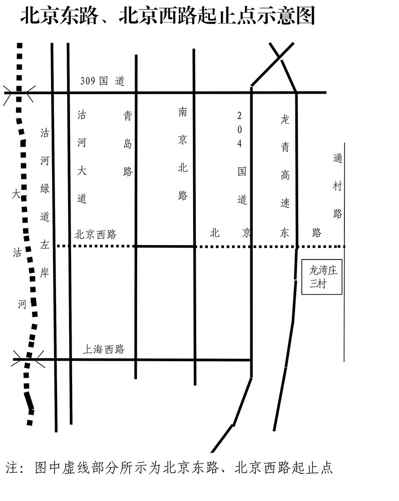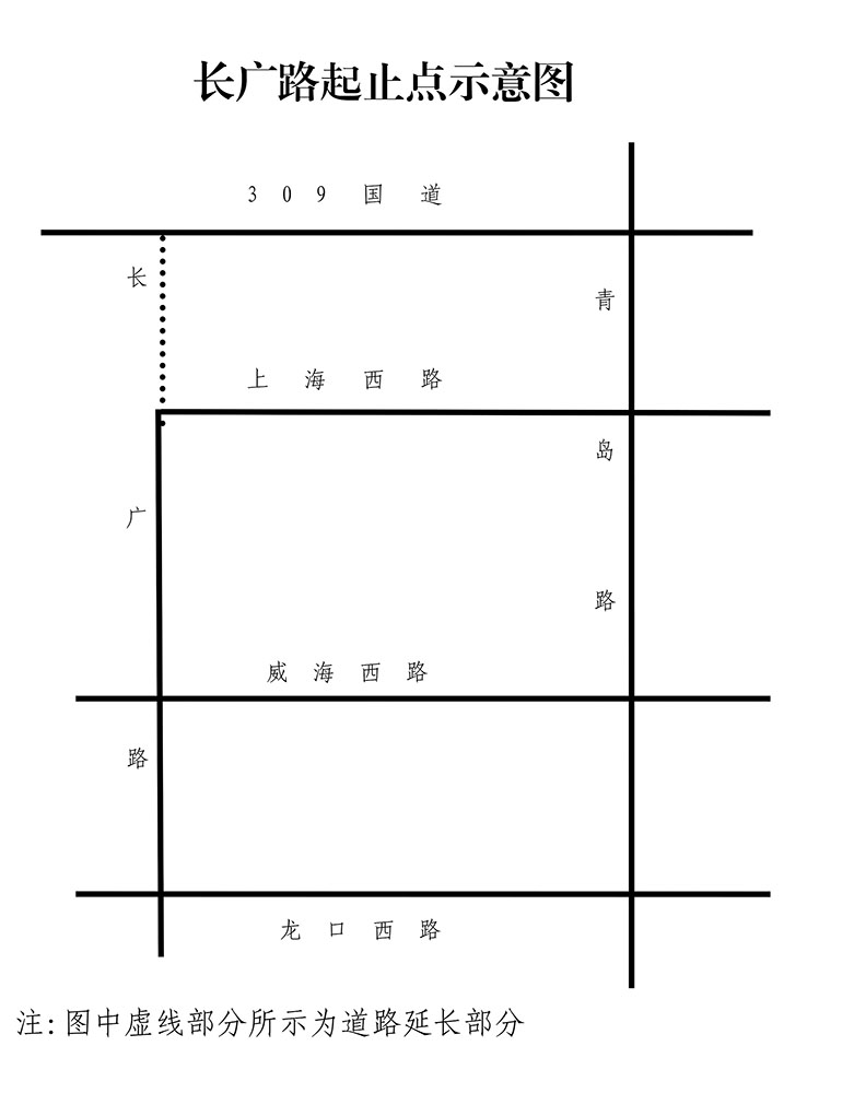 原起止点为:南起龙口西路北止上海西路(西政字[2004]73号);现调整为:南起龙口西路北止309国道。