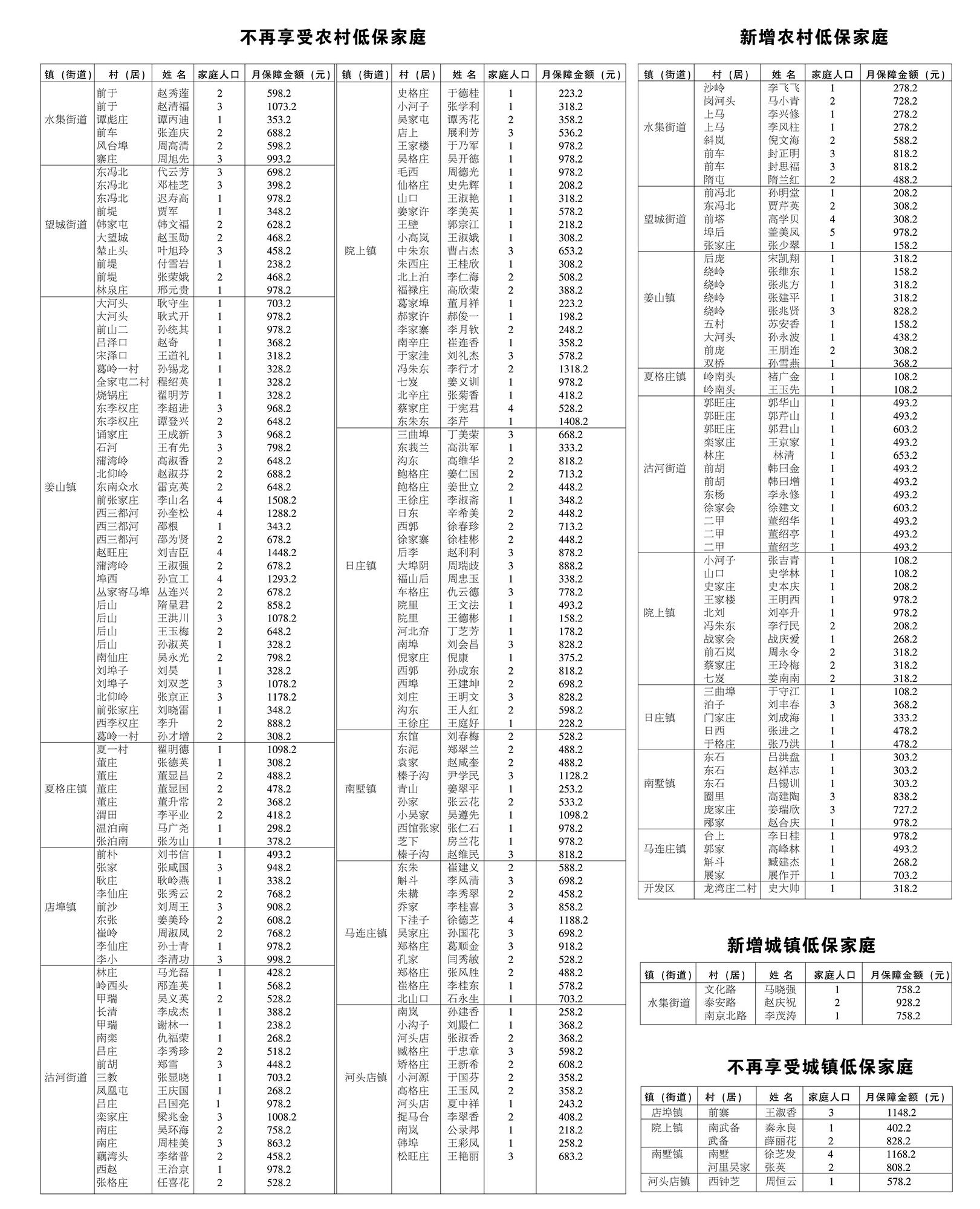 2016年五月份城乡低保对象调整情况公示