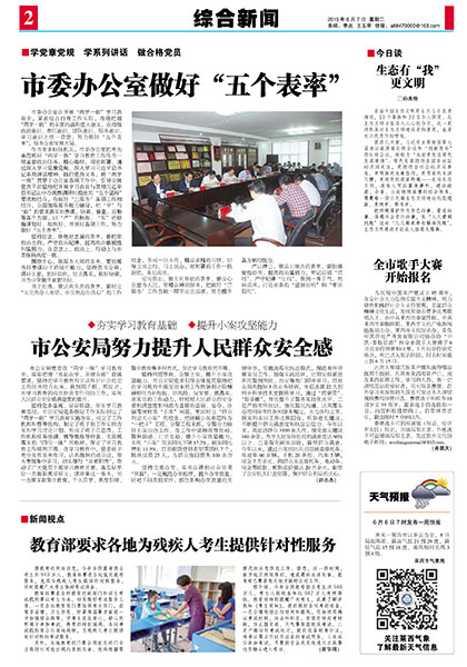 近年来,我市采取随班就读、送教上门、医教康教结合等方式,全力实施特殊教育提升计划,所有入学残疾学...