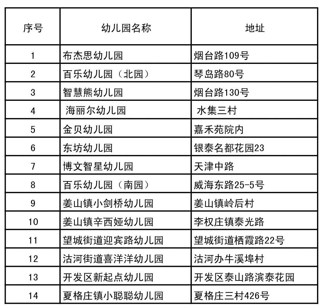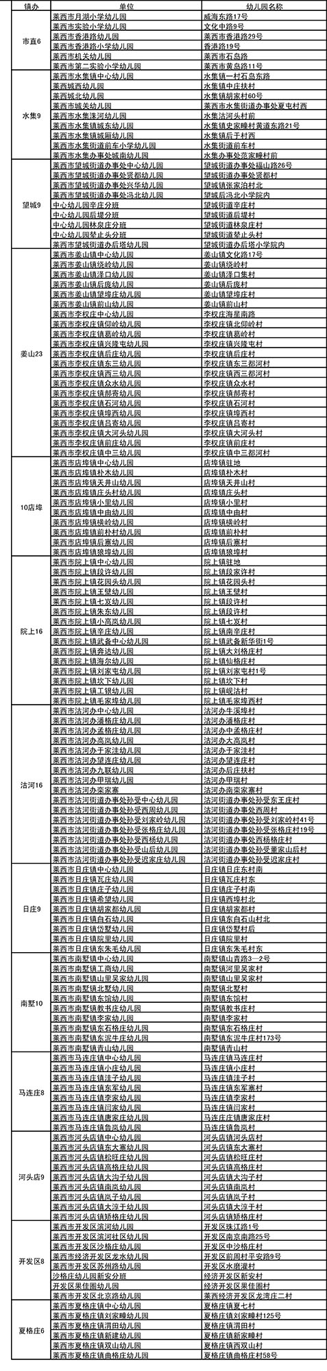 莱西市公办幼儿园信息表