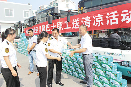▲7月21日上午,骄阳似火。天地缘集团将400箱瓶装矿泉水送到了交运集团莱西发展事业部,给在烈日炙烤下依然坚守公交一线的司机送去清凉和关爱。 (崔克臣)