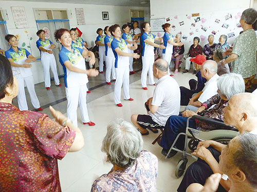 日前,市老年体协组织操舞专委会的二十余名成员来到康馨护理中心,探望慰问入住的老人,并表演了精彩的健身操、健身球等节目,使老人们在欢乐中感受到社会的关怀。 (高欢欢)