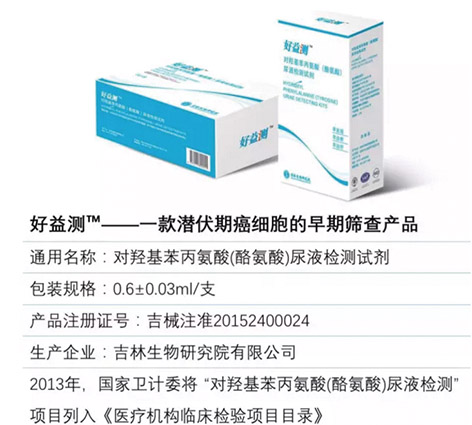 好益测,也就是对羟基苯丙氨酸尿液检测试剂,成功解决了防癌筛查中“发现晚、准度低、覆盖窄、检测慢、费用高?、缺安全”的六大难题,实现了“更早、更准、更广、更快、更省、更安”六大优势。