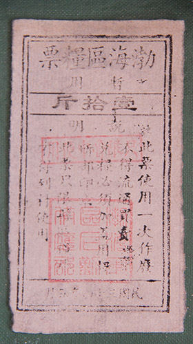 民国时期的渤海区粮票。