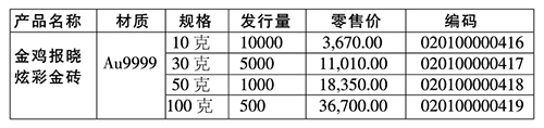 鸡年炫彩金砖主题为金鸡报晓, “鸡”“吉”同音,有吉祥如意、驱邪纳福、大吉大利的寓意。