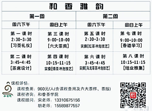 “和香雅韵”课程由和香茶书院提出,并创作和实践了严谨的课程体系。通过“优雅、典雅、雅致”的分享方式,让茶进入生活、让生活因为“茶”的介入,而充满了阳光与快乐!在现在快速的科技和网络的时代,茶生活---是我们每一个人都需要的生活方式!
