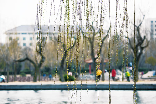 一树春风千万枝,万条垂下绿丝绦。在月牙湖畔,柳树的枝条已透出新绿,处处洋溢着春的气息。