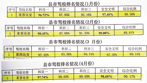 近日,记者从运安驾校了解到,今年1—4月份,运安驾校培训合格率连续4个月高居青岛辖区70多个驾校综合排名第一位。运安驾校用事实说话证明了自己的实力。