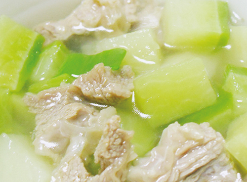 4.冷水放入葱姜和黄瓜片,大火煮开后改小火,一片片放入肉片,煮开后撇出浮沫,淋上腌肉片时剩余的鸡蛋液,调入盐即可。