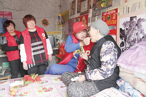院上丽馨居家养老服务中心的工作人员与镇机关干部、志愿者20余人,为64位孤寡老人送去“爱心粽子”,让老人们感受节日的快乐。