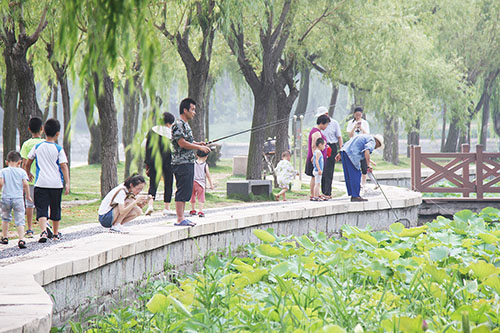 绿树浓荫夏日长,炎炎烈日照池塘。碧波荡漾荷花美,旷野清风远送香。夏日的月湖荷塘一片碧绿,荷花点点初现美意,吸引不少市民前来赏花,玩水。