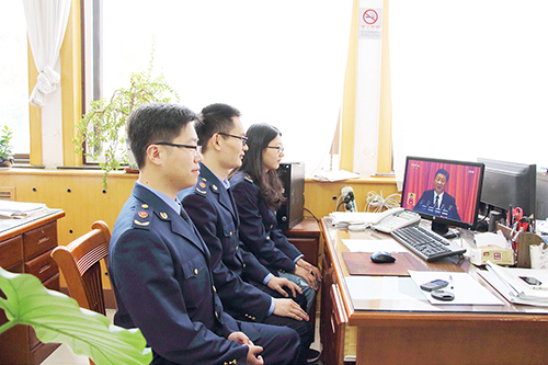 市市场监督管理局干部职工通过网络直播,收看十九大开幕会盛况。