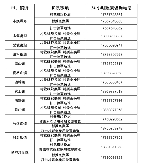 市、镇24小时政策咨询电话一览表