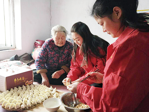 1月14日,院上镇丽馨居家养老服务中心的工作人员一大早就来到刘月兰老人家中,包饺子、吹蜡烛、切蛋糕……在欢声笑语中,陪伴老人度过了九十大寿。服务中心主任周丽丽说:“我们每年都会安排工作人员陪伴老人过生日,看到每个老人的笑脸是我们最开心的事情。” (刘亚男)